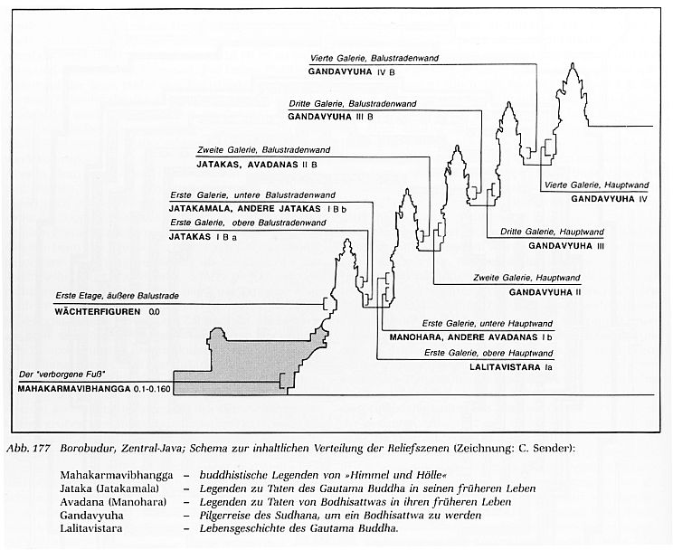 gewidmet. Das Kamadhatu ist eine große rechteckige Wand außen am Fuß des