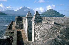 Fort Kalamata (auch Kayu Merah) in Bastiong wurde 1510 von Portugiesen erbaut.
