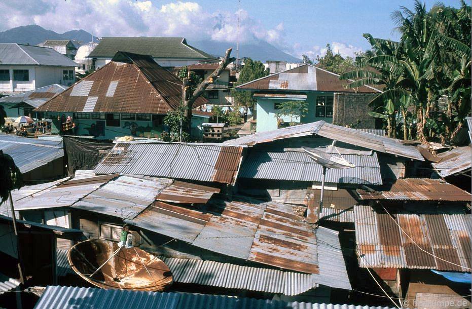 Blick von den Mauern Fort Oranjes auf dei Wellblechdächer der Stadt