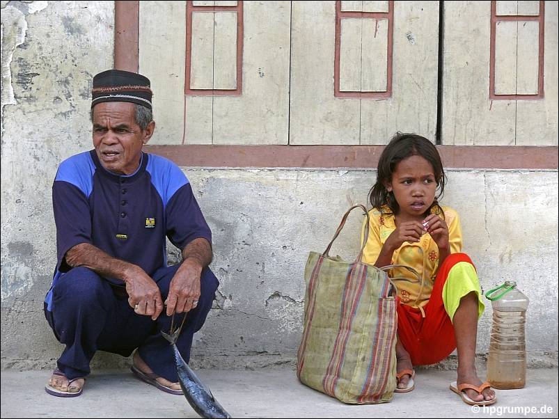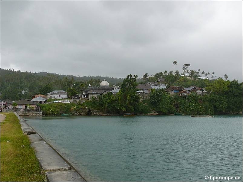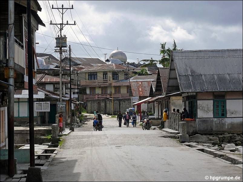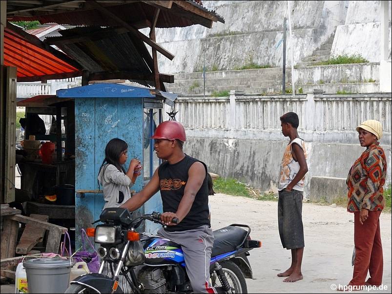 Im Reiseführer steht über diese Insel so gut wie nichts. Was also tun? Außerdem fing es auch noch an zu regnen. Aber auch hier spielte der Zufall wieder mit. Wir trafen am Bootsanleger Max. Er sprach mich auf Englisch an, und wir erfuhren, dass er eigentlich Lehrer in Dobo (Aru-Inseln) war, jetzt aber in den Ferien mit Frau und Kind in seinem Dorf bei seiner Familie wohnte. Er lud und spontan ein, mit in sein Dorf zu kommen.