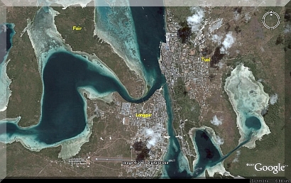 Tual auf der Insel Dullah ist die größte Stadt (ca. 45 000 Einwohner) und auch Hauptstadt der neuen Provinz Südost-Maluku (Maluku Tenggara), mit Langgur auf Kei Kecil durch eine Brücke verbunden. Die Stadt liegt erstaunlicherweise auf mehreren Hügeln und hat z.T. steile Straßen. Während Tual überwiegend von Moslems bewohnt wird, ist Langgur die christliche Bastion mit Missionszentrum, Priesterseminar, Kirchen und Schulen. Langgur ist durch eine Fußgängerbrücke auch mit der Insel Fair verbunden. In Langgur gibt es ein Tourismusbüro, in dem jemand sogar englisch spricht. Ich bekam dort eine Broschüre mit den Sehenswürdigkeiten (indonesisch/englisch) und eine VCD über die Kei-Inseln. |