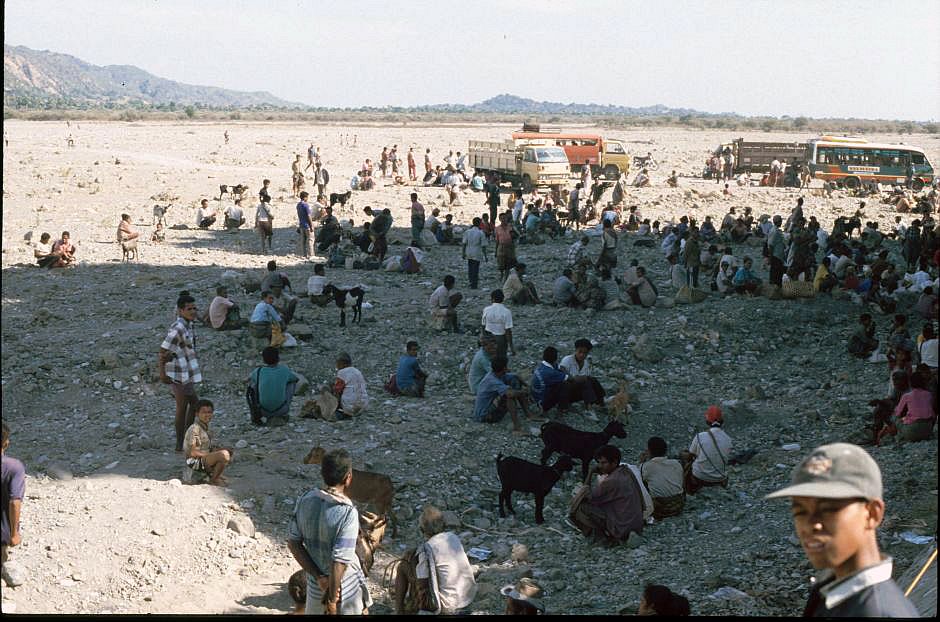 | Markt am Tono-Fluss: Die Abteilung für Lebend-Tiere befindet sich teilweise im Flussbett. |