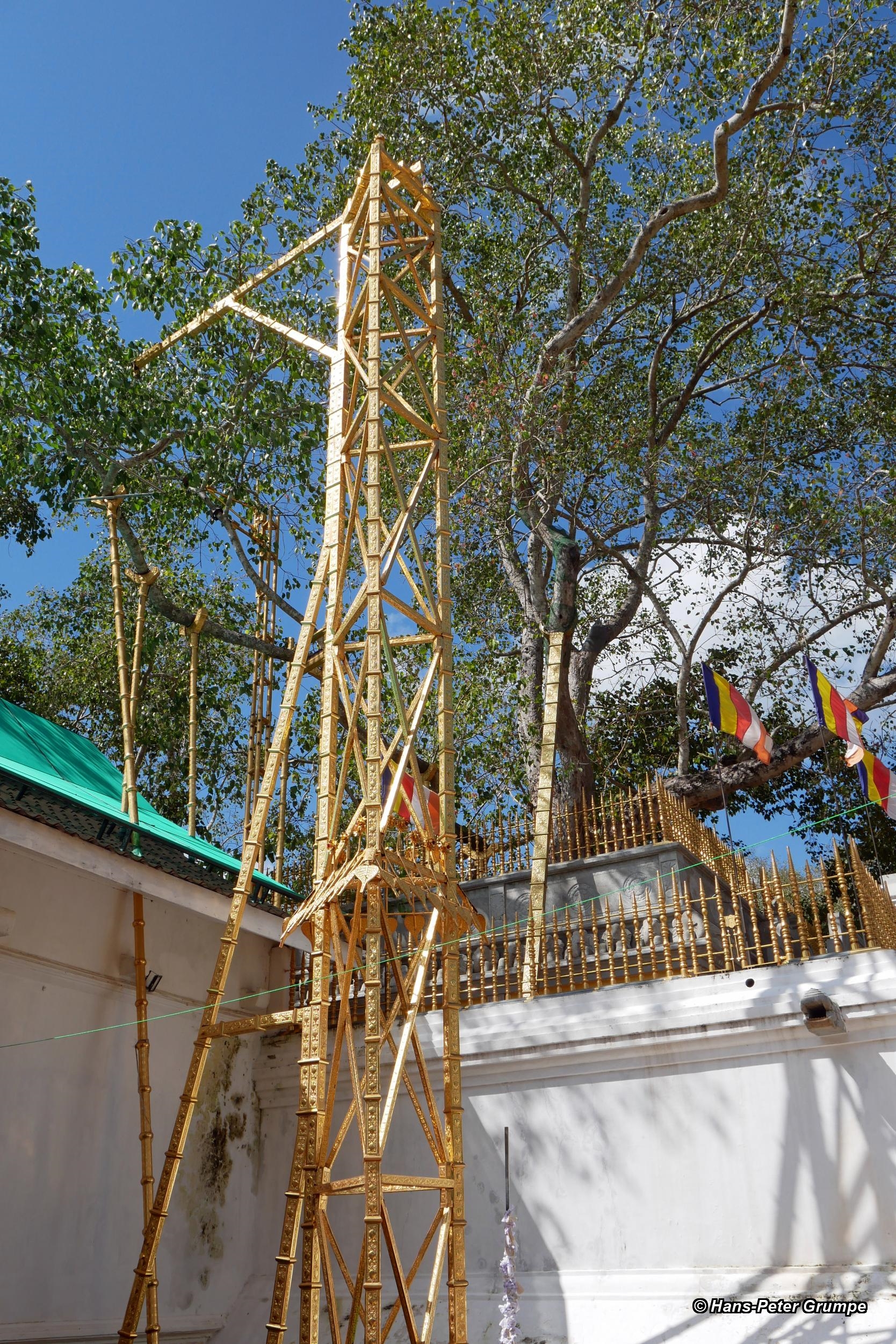 Anuradhapura - Jaya Sri Maha Bodhi: Vergoldete Stützen für die Äaste