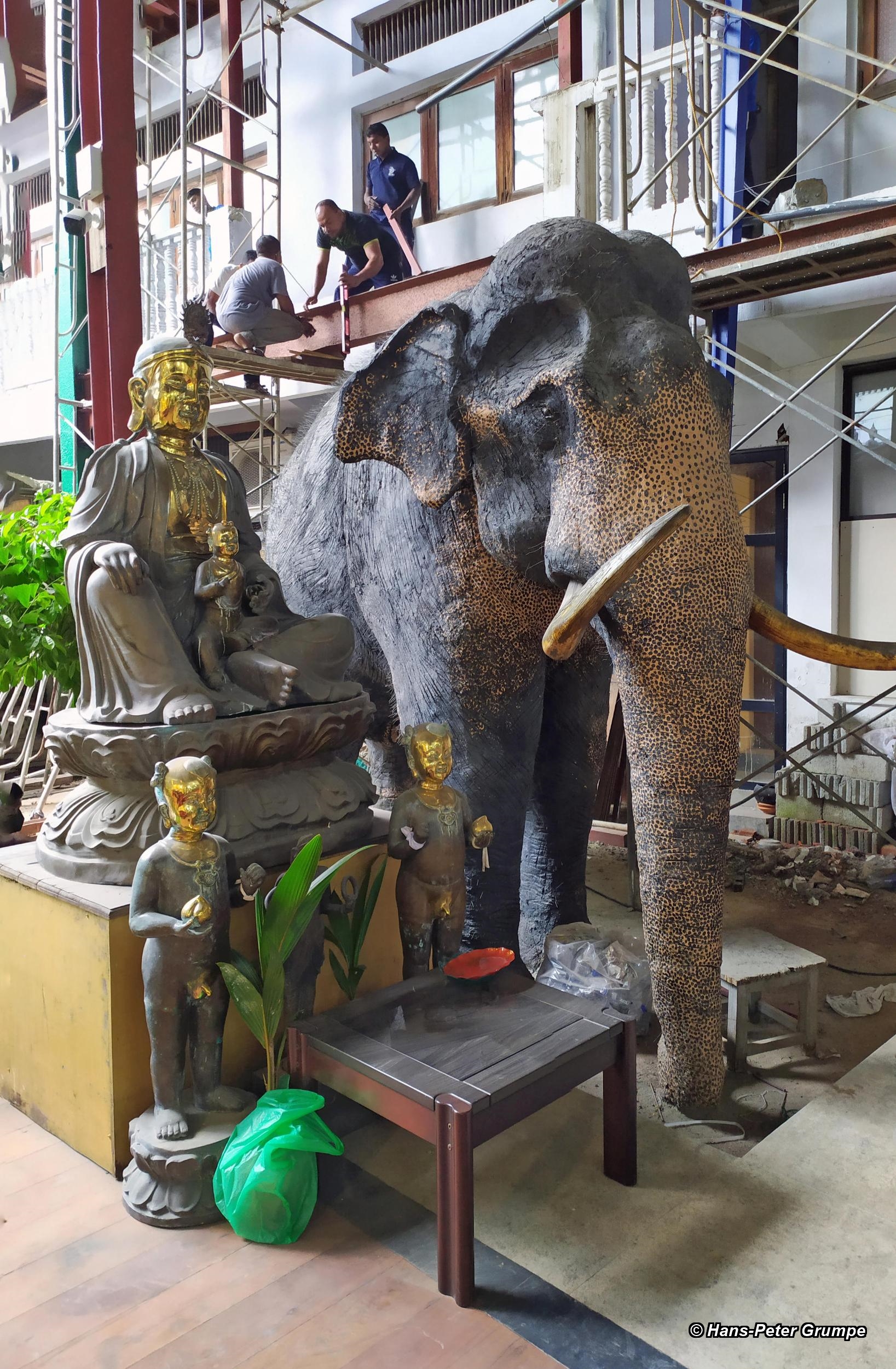 Colombo: Gangaramaya-Tempel - Buddha-Statuen, Bauarbeiten