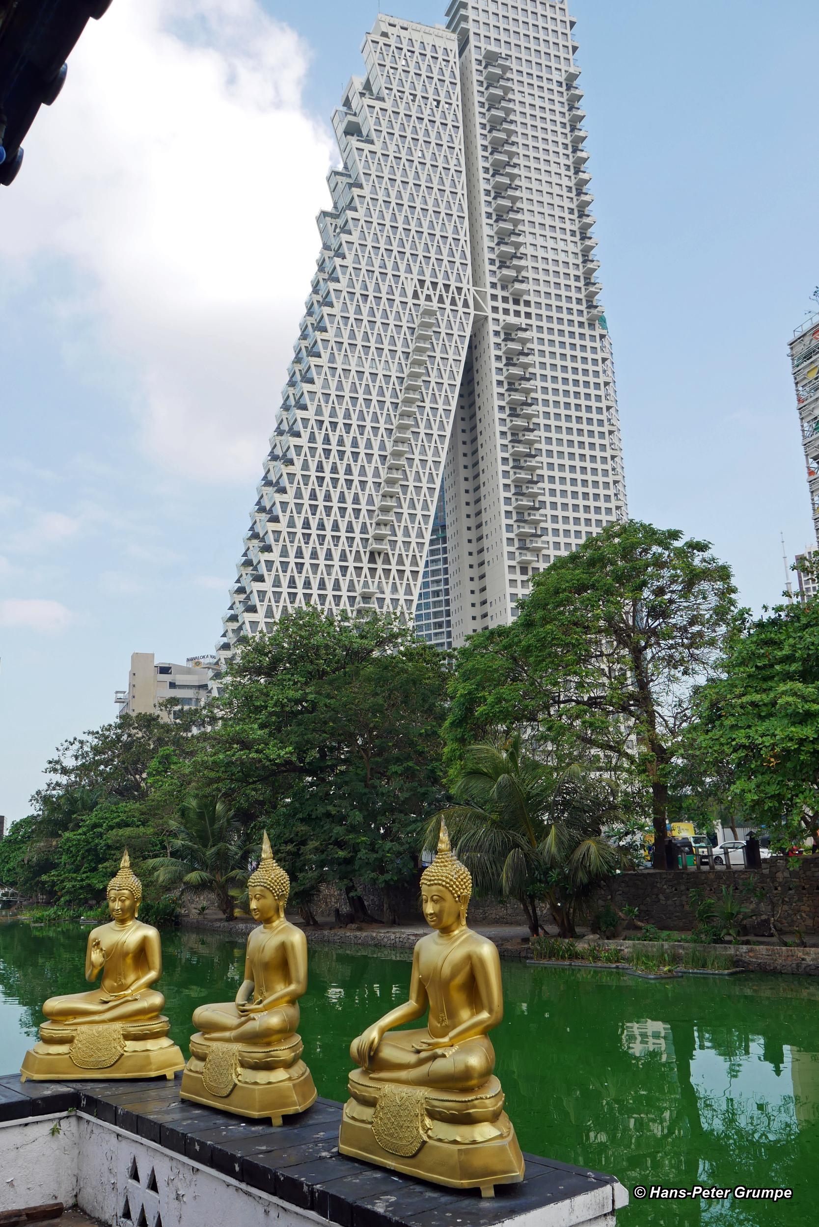 Colombo: Seema Malakaya mit dem Altair-Building (68/63 Stockwerke, 240 m hoch, 2020 fertiggestellt)