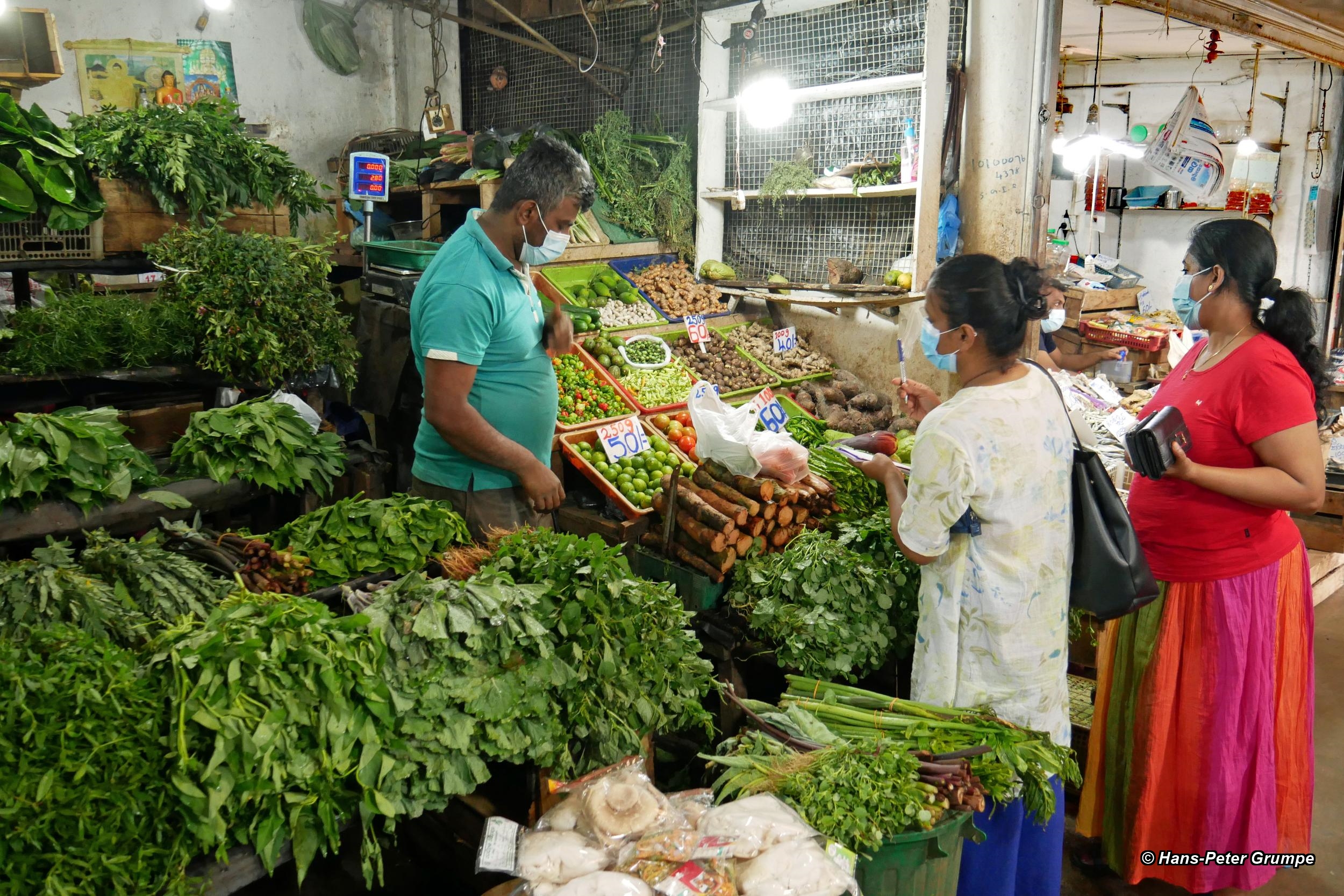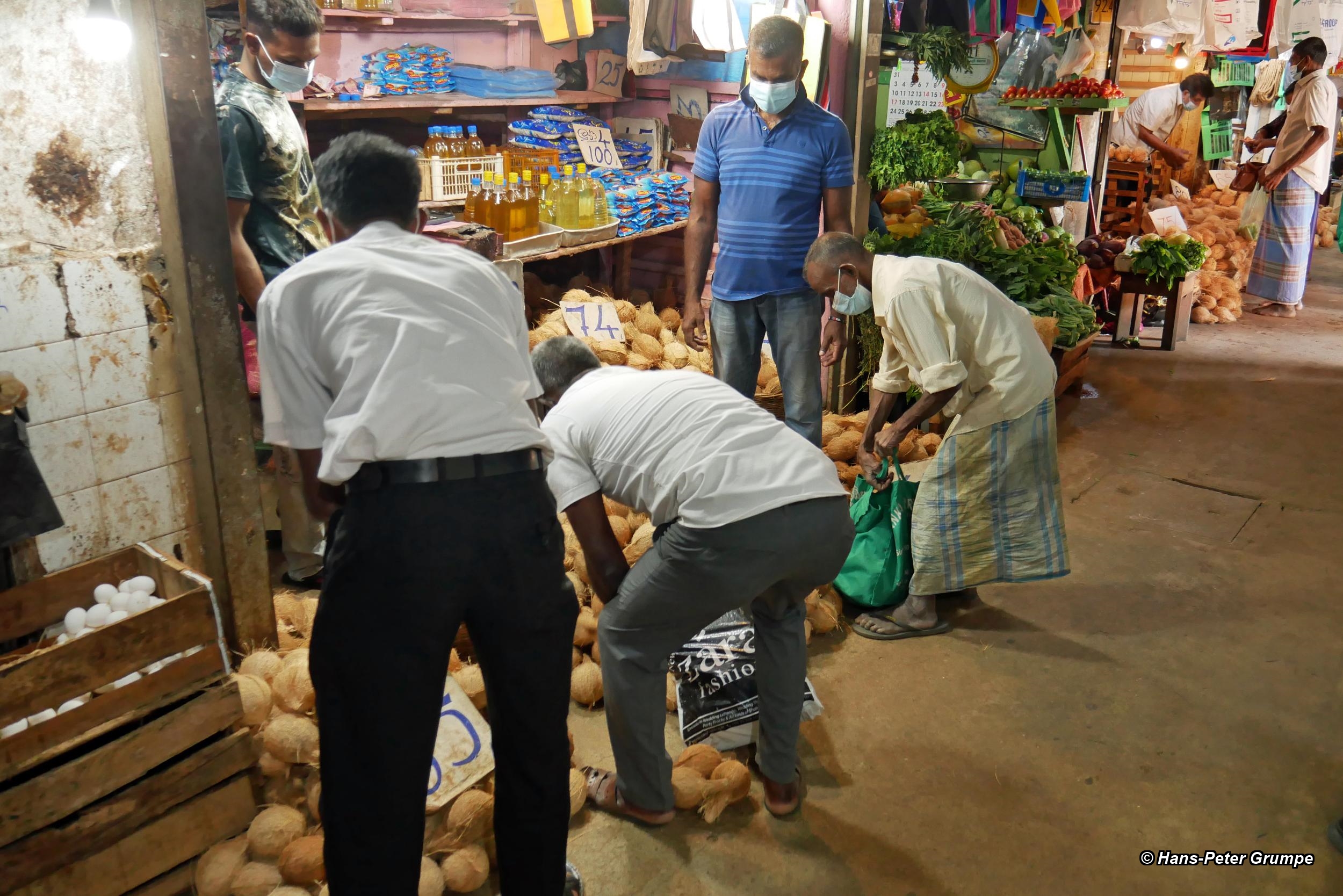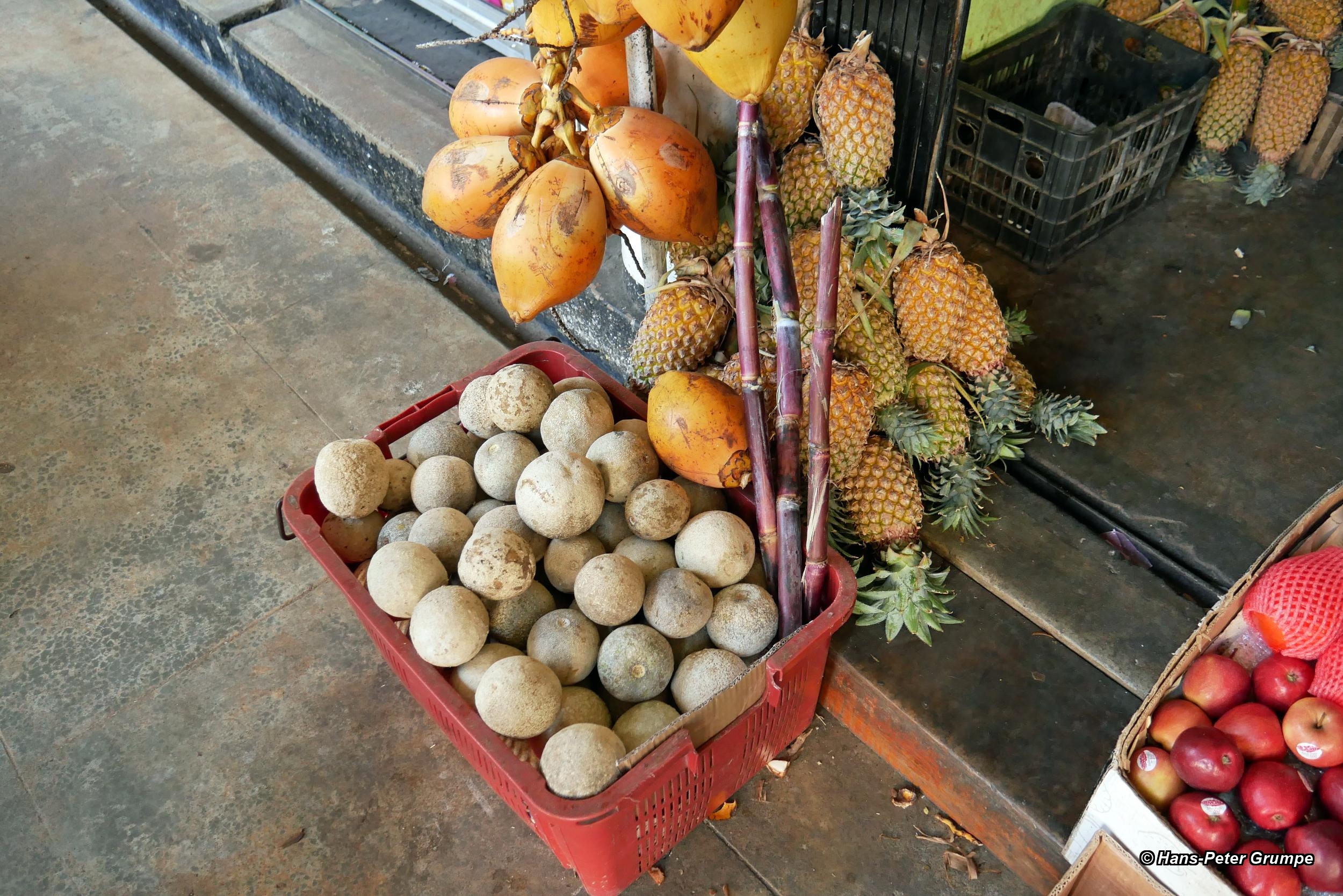 Kandy: Zentralmarkt - vorne Limonia acidissima, auch Indischer Holzapfel oder Elefantenapfel genannt