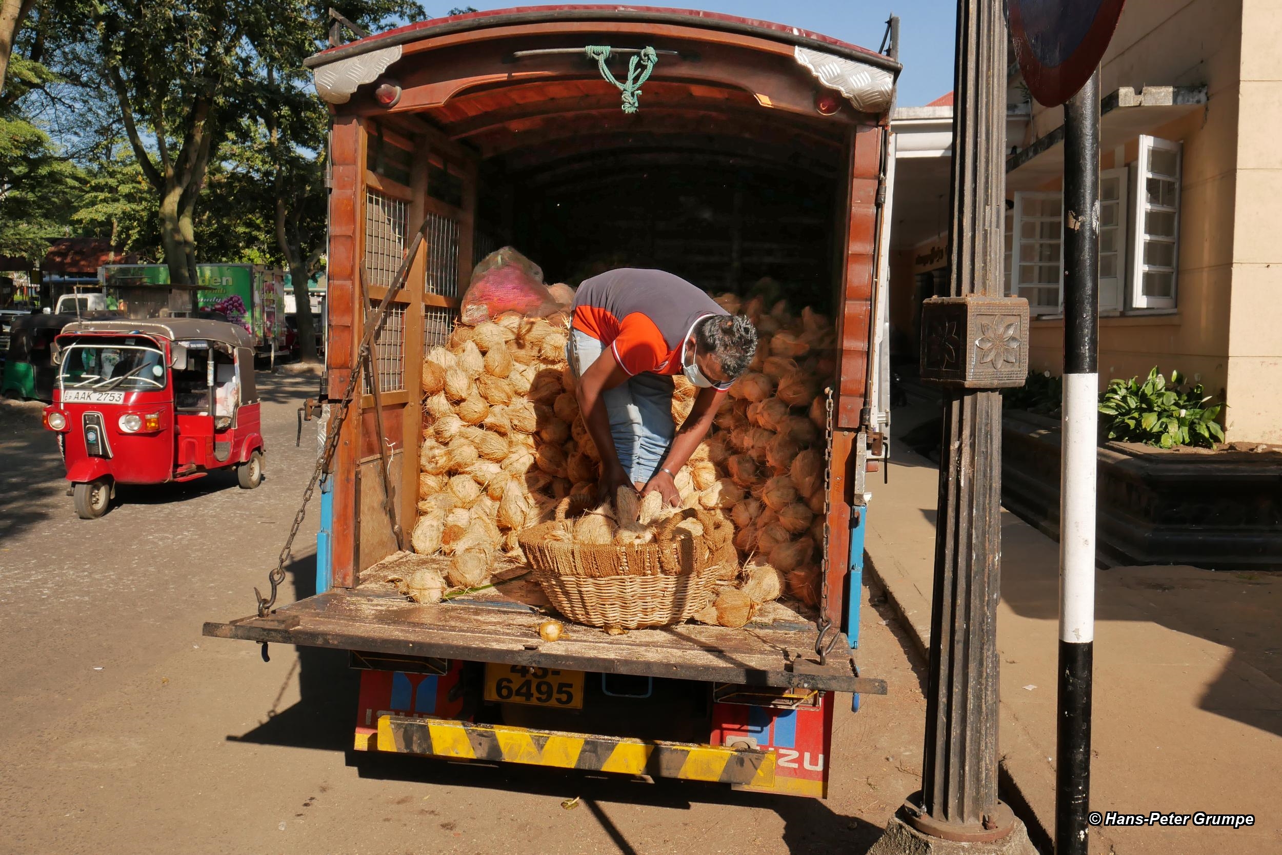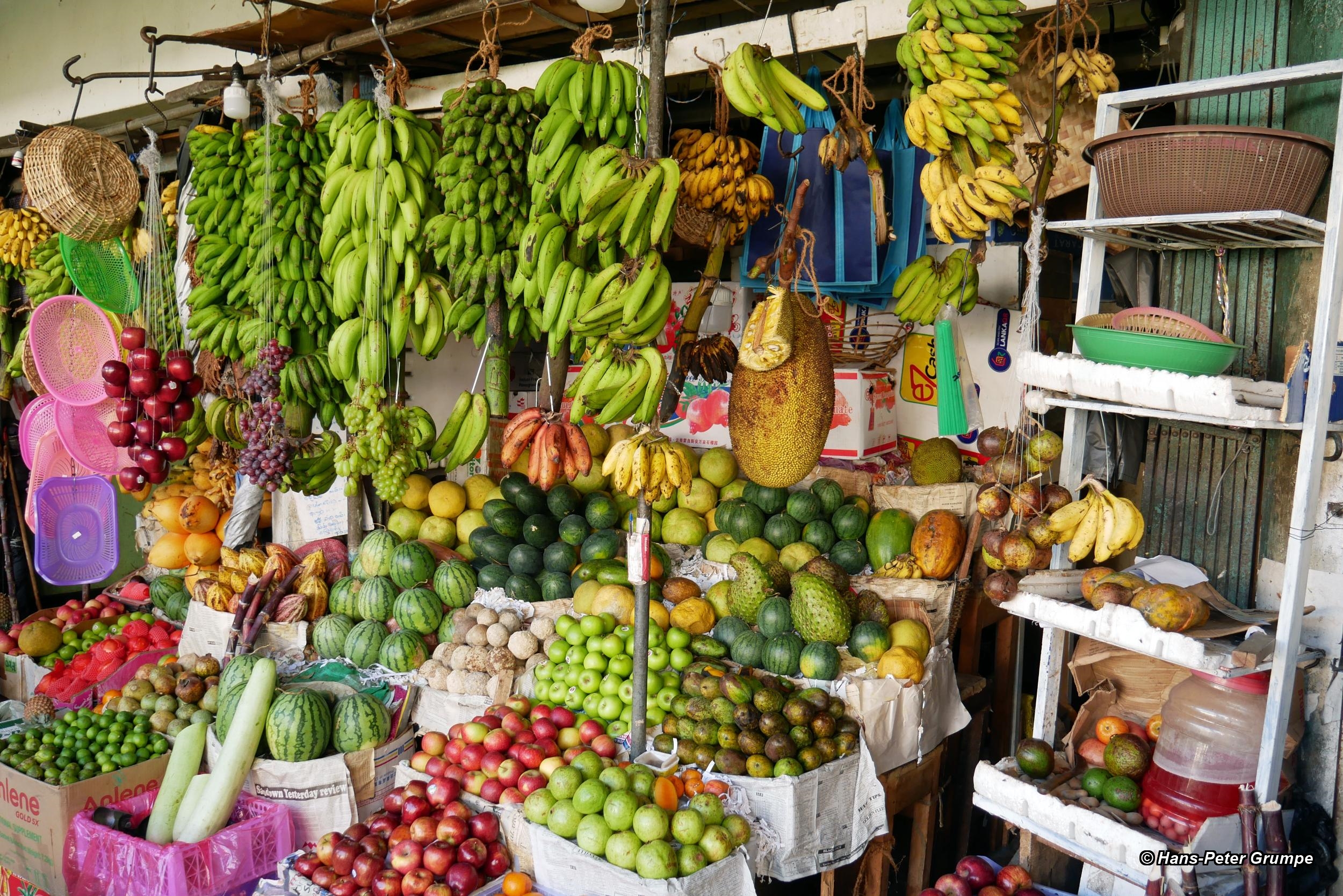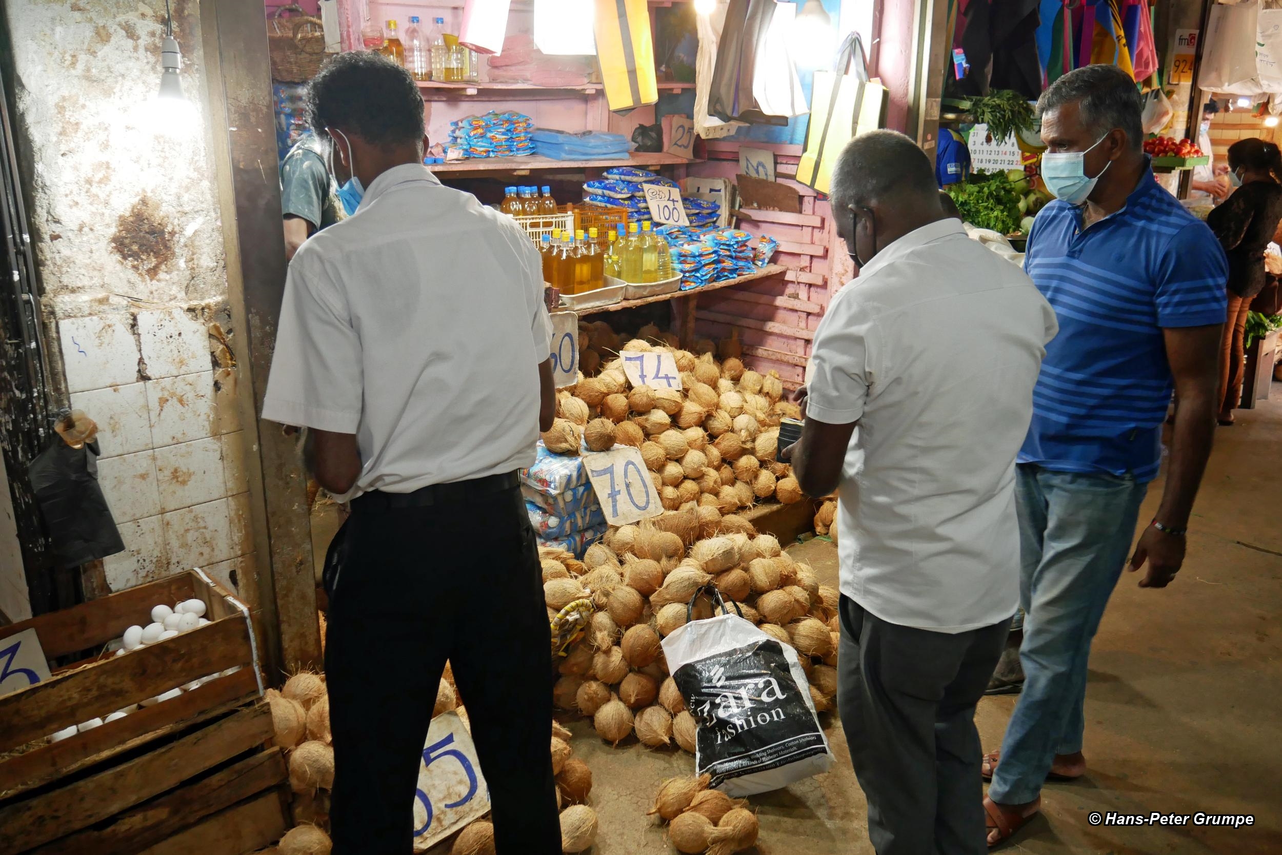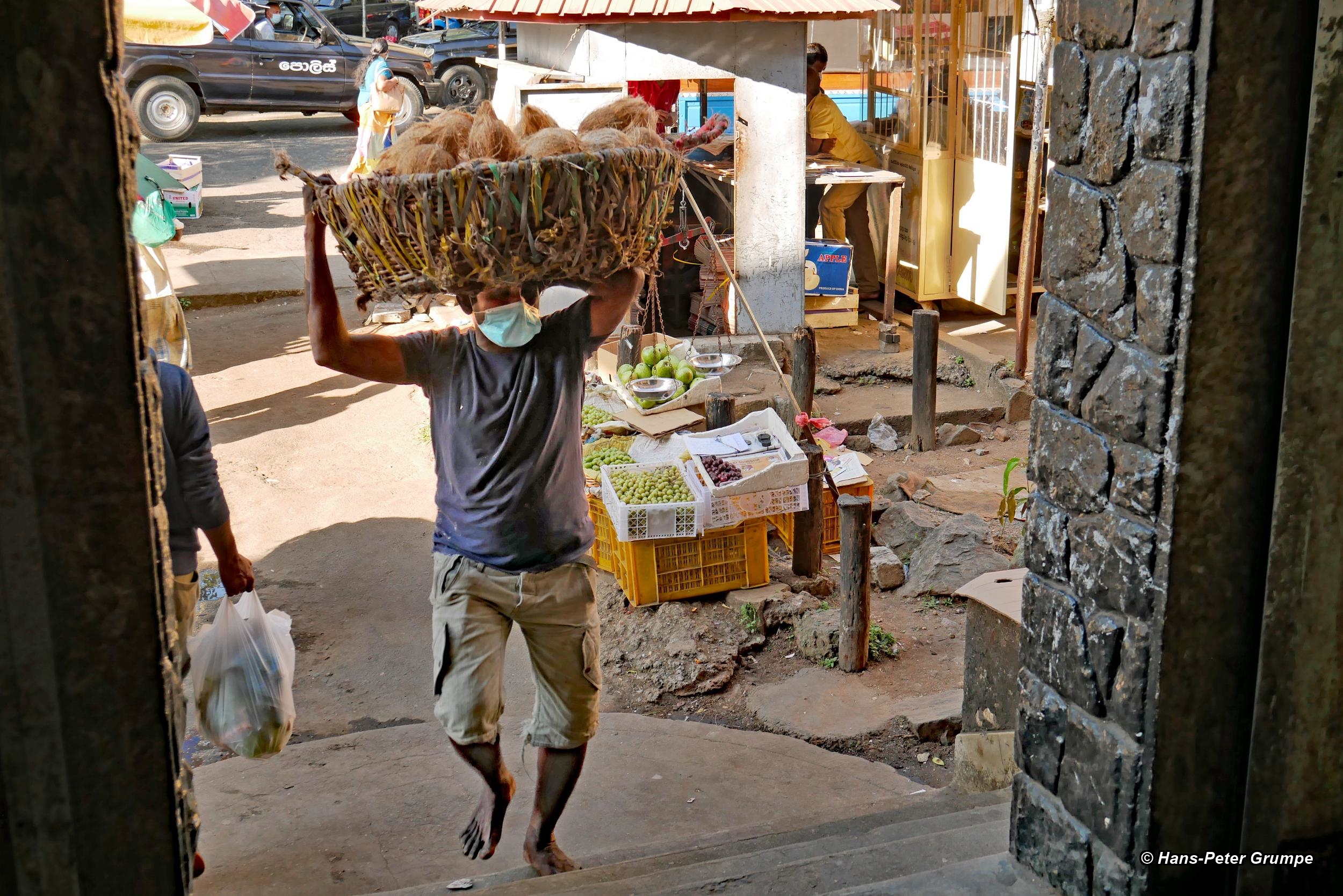 Kandy: Zentralmarkt - vorne Limonia acidissima, auch Indischer Holzapfel oder Elefantenapfel genannt