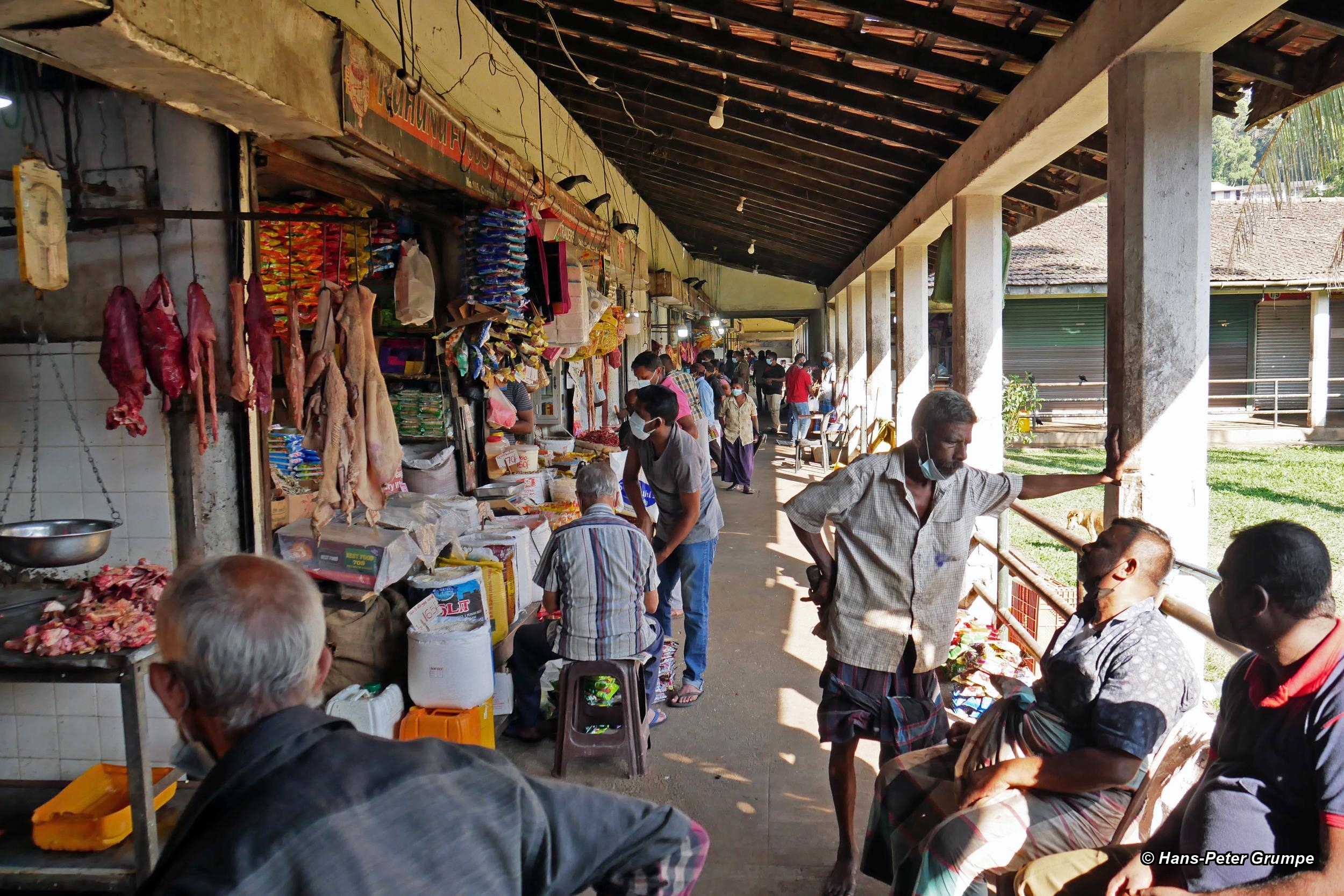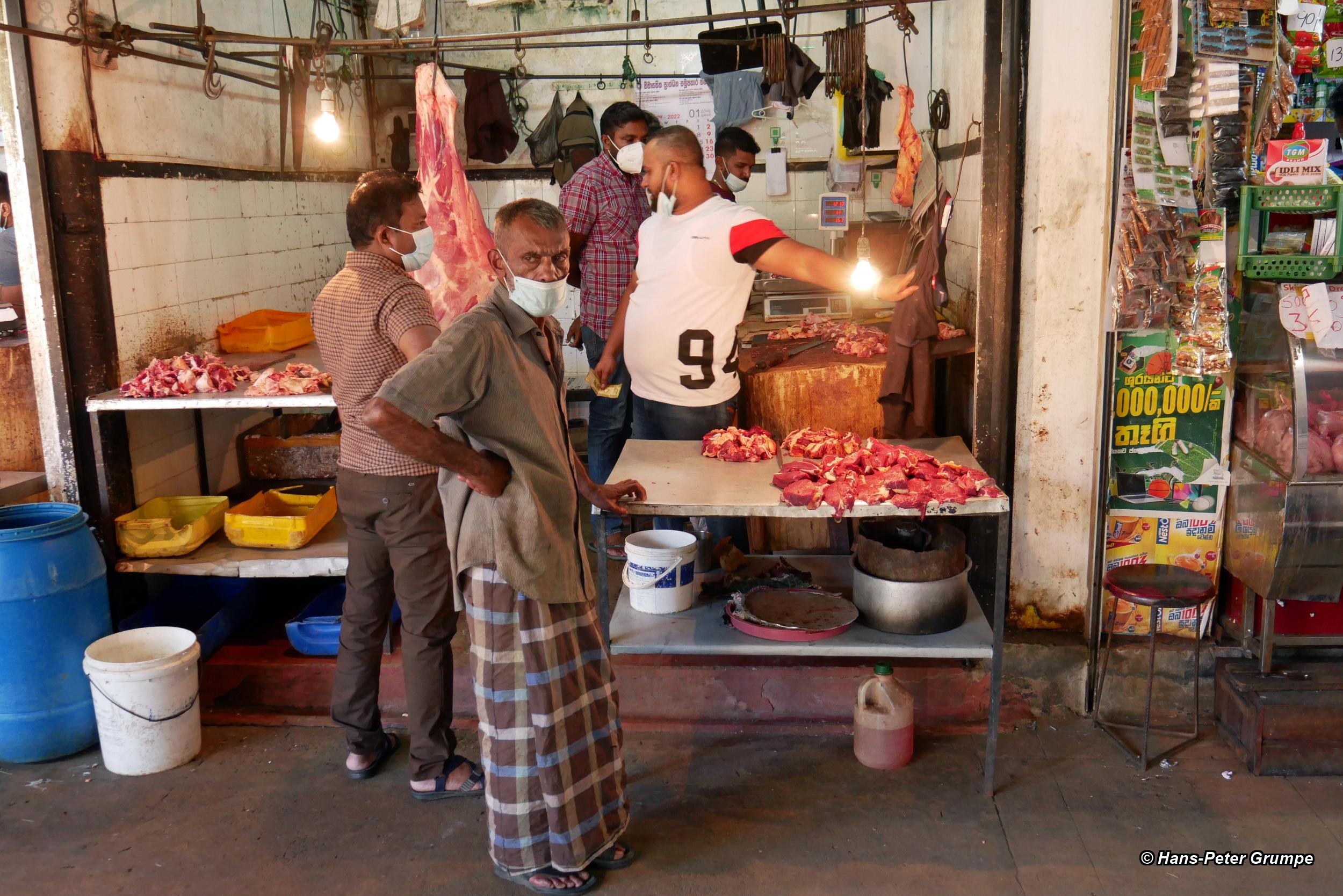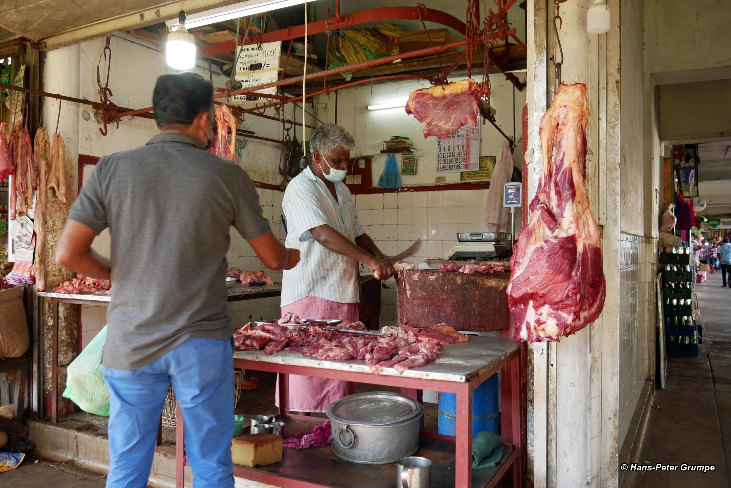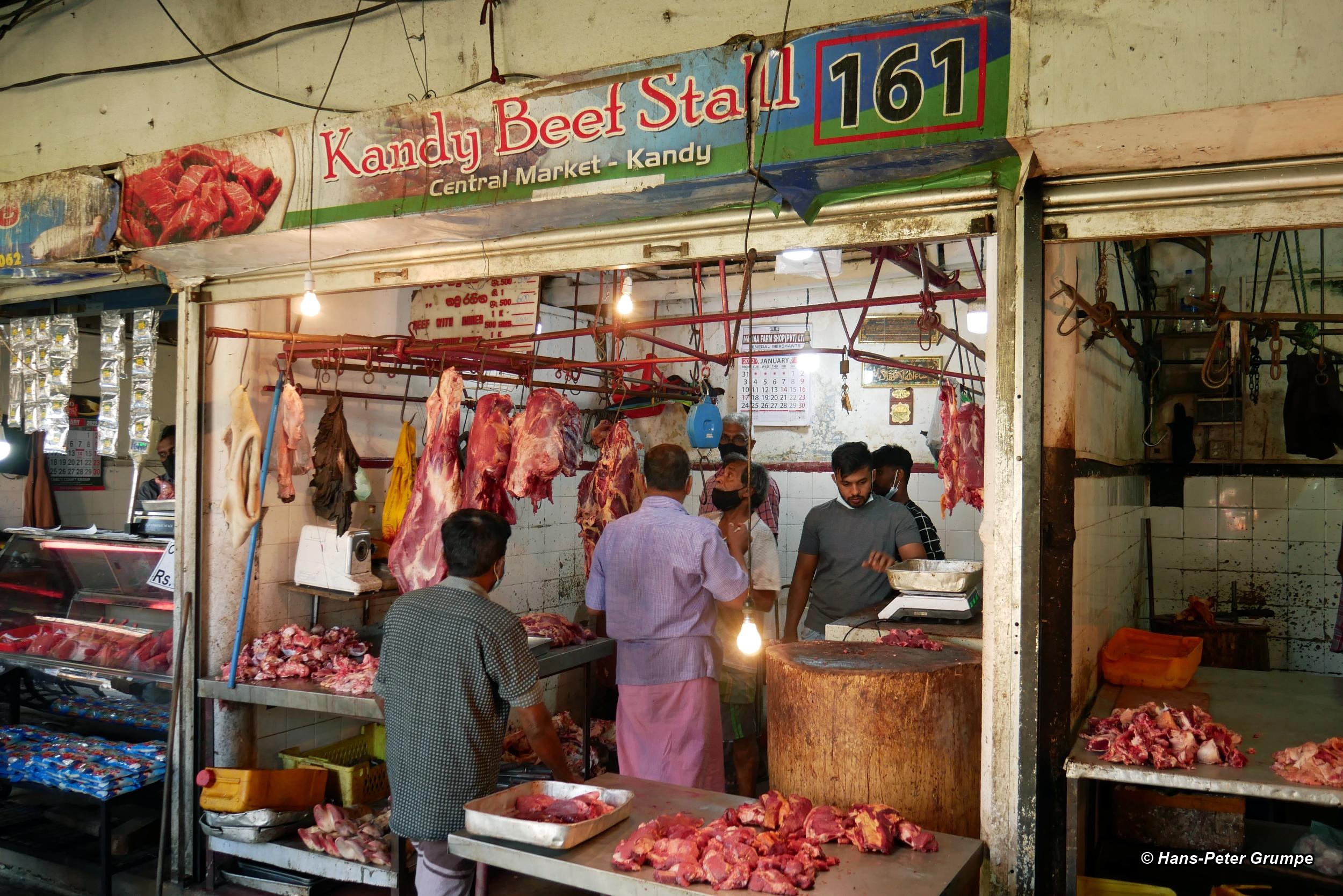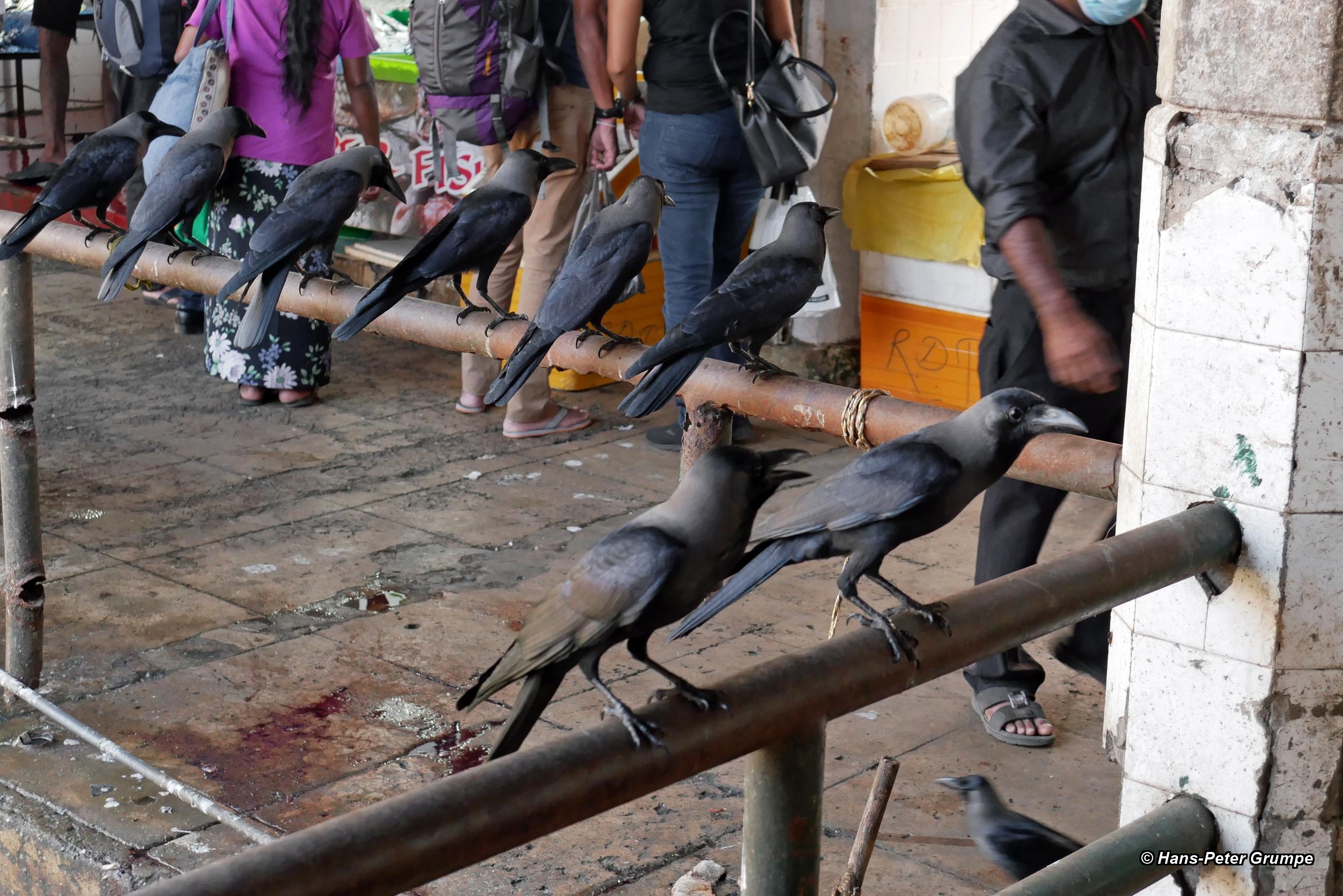 Kandy: Zentralmarkt - Der Rabe hat sich gerade ein Stück Fleisch stibitzt