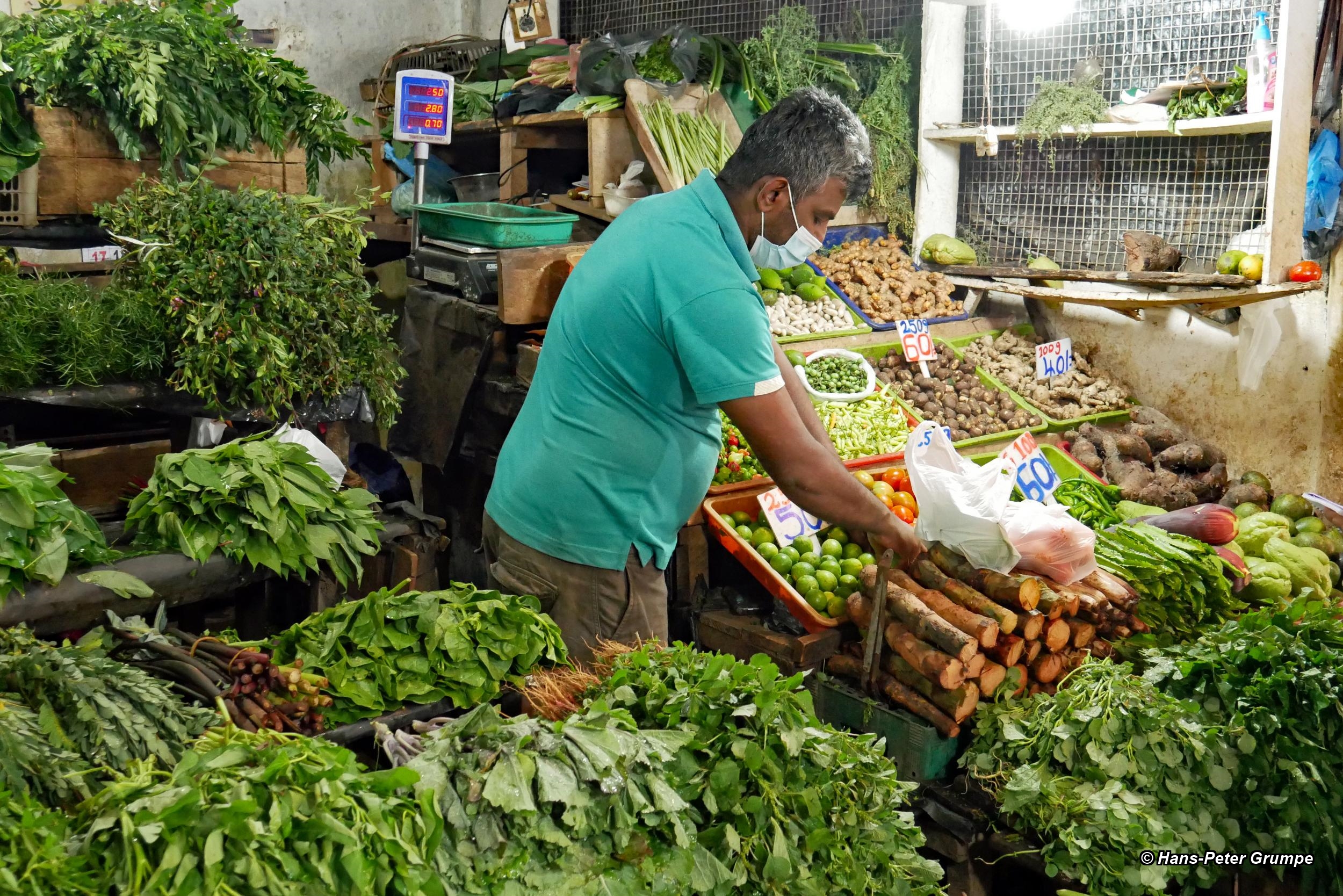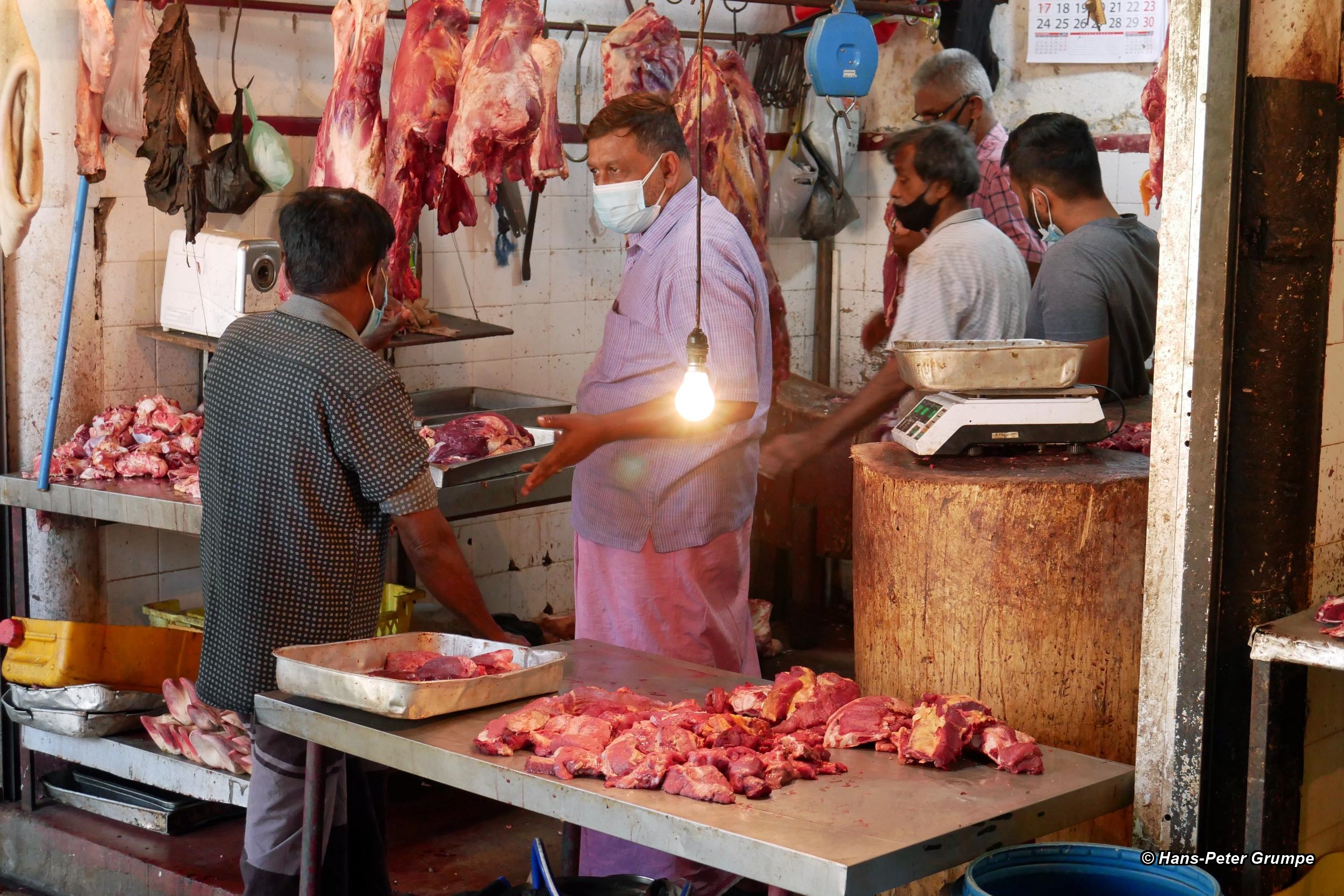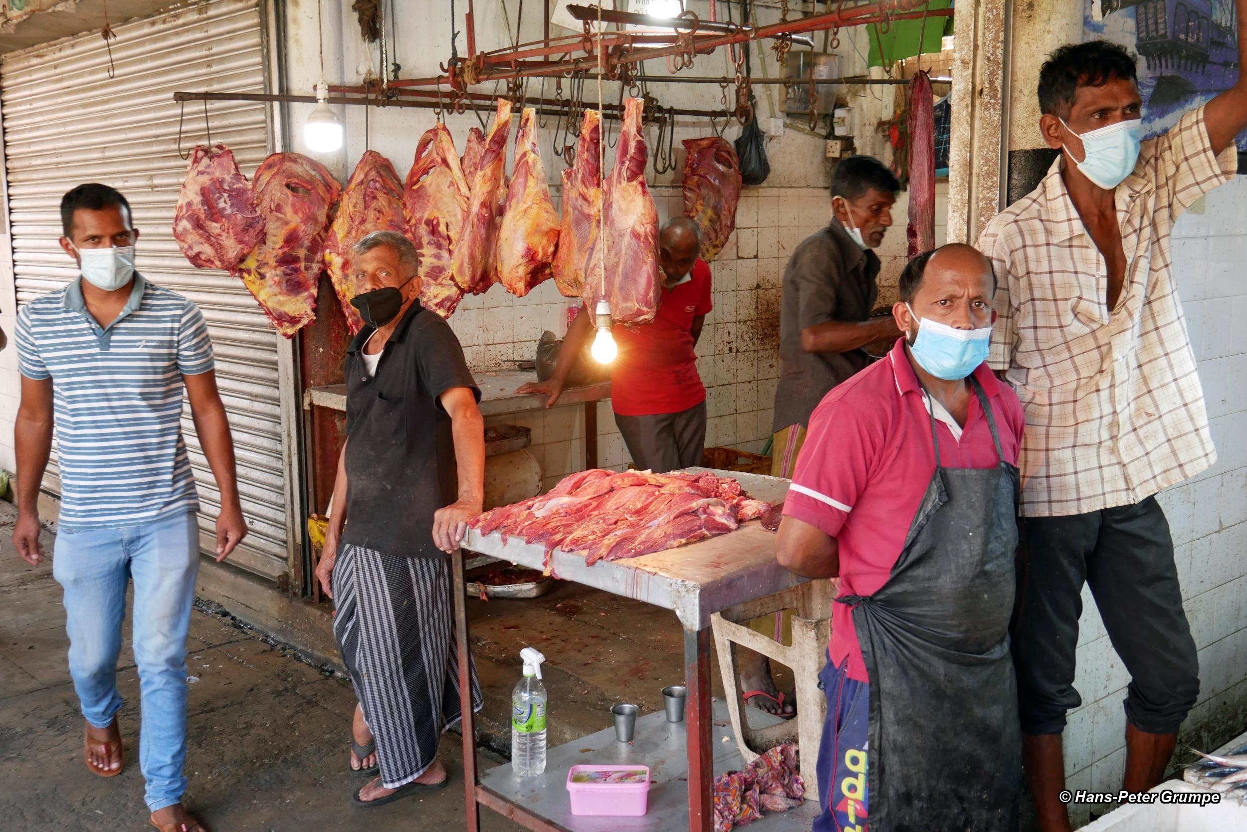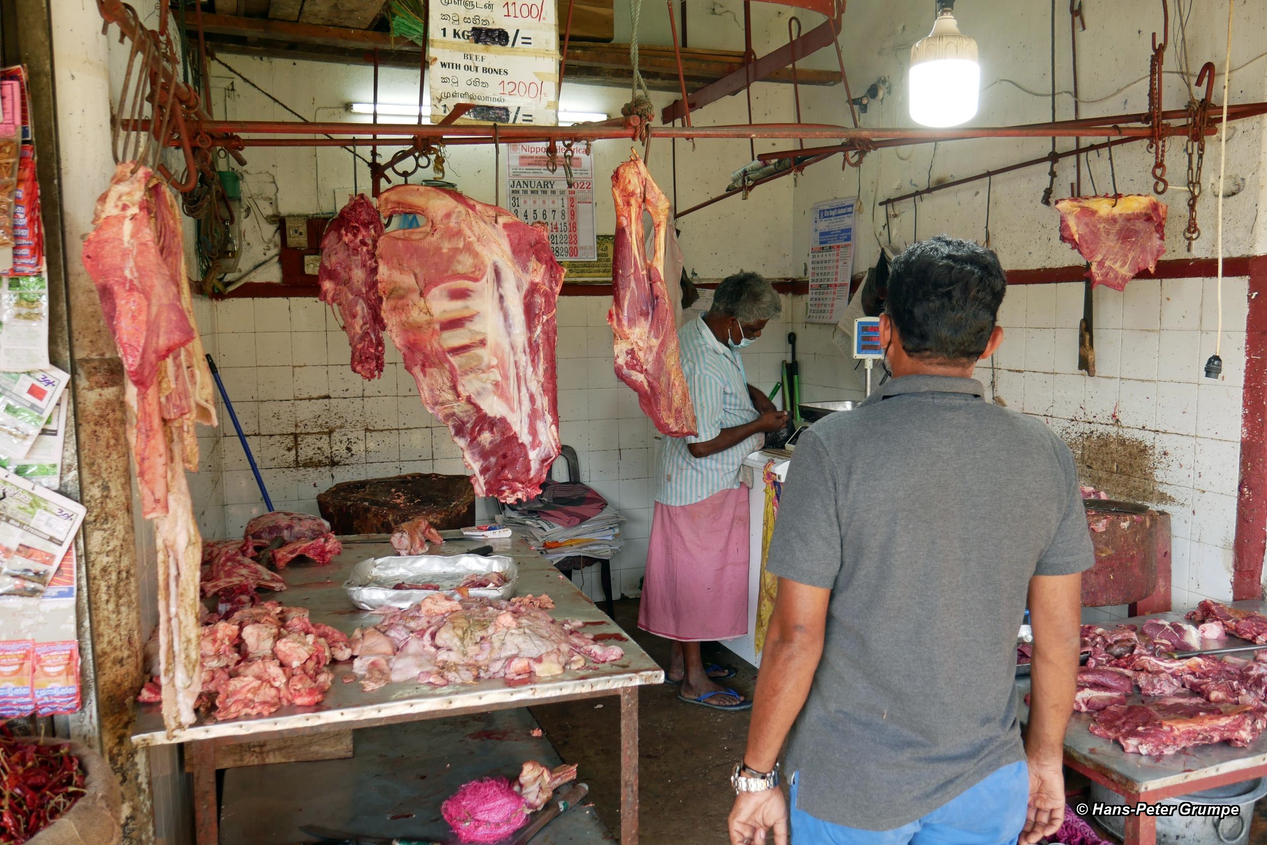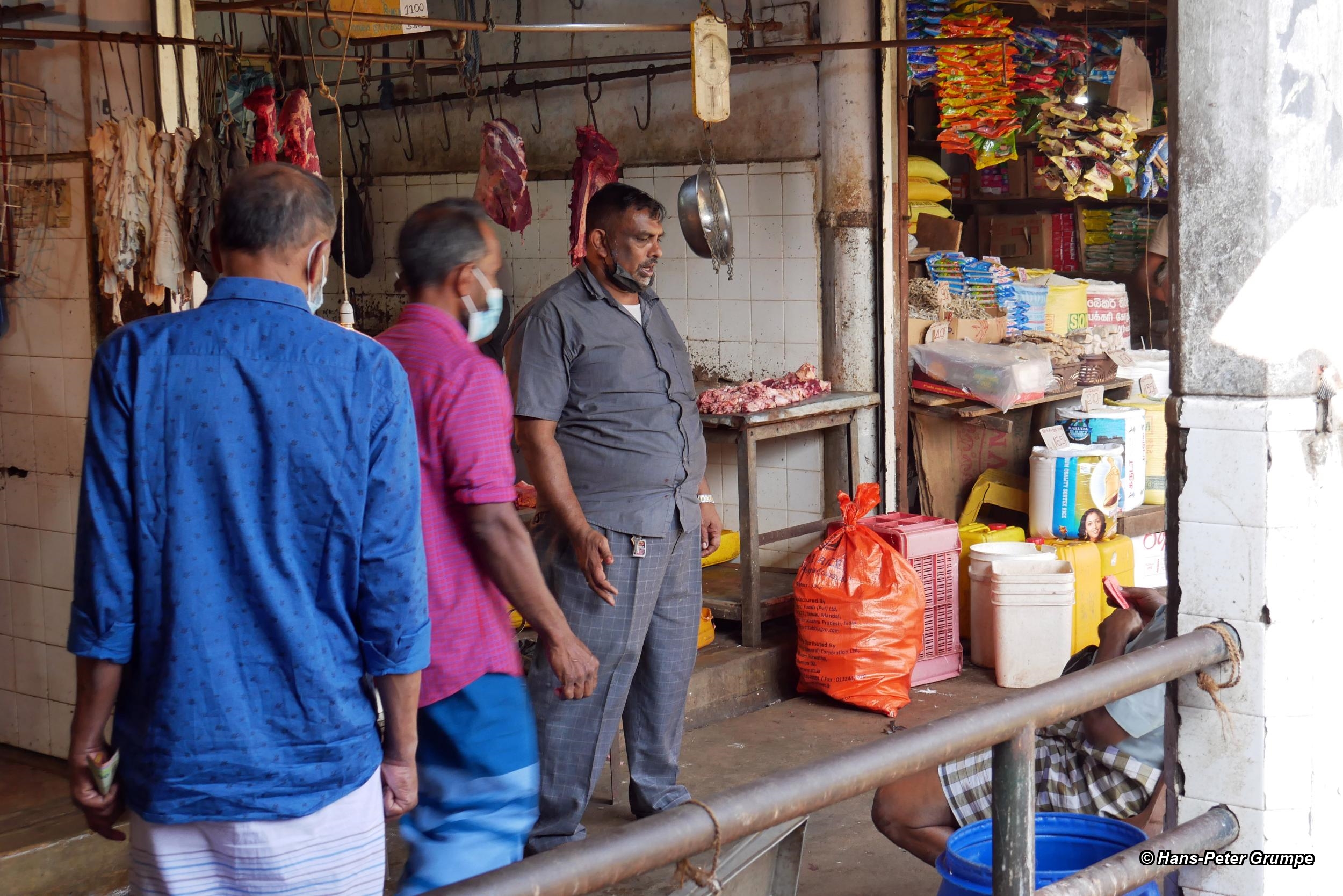 Kandy: Zentralmarkt - Der Rabe hat sich gerade ein Stück Fleisch stibitzt