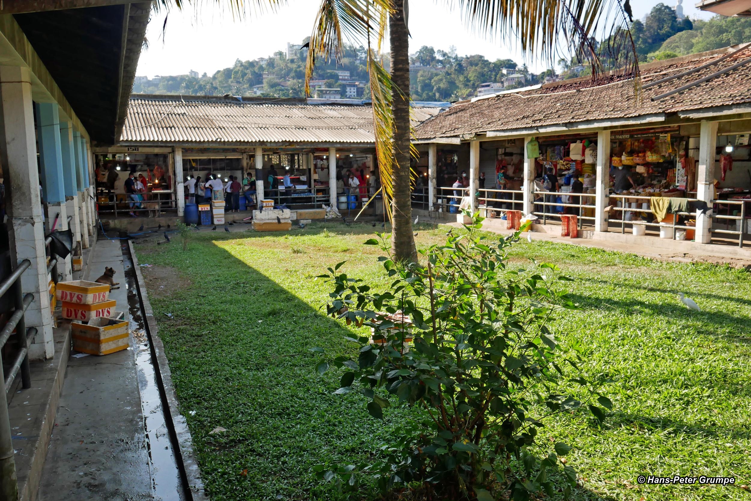 Kandy: Zentralmarkt - Raben warten auf eine günstige Gelegenheit...