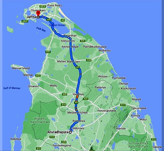 Route Anuradhapura - Jaffna (Google Maps) |