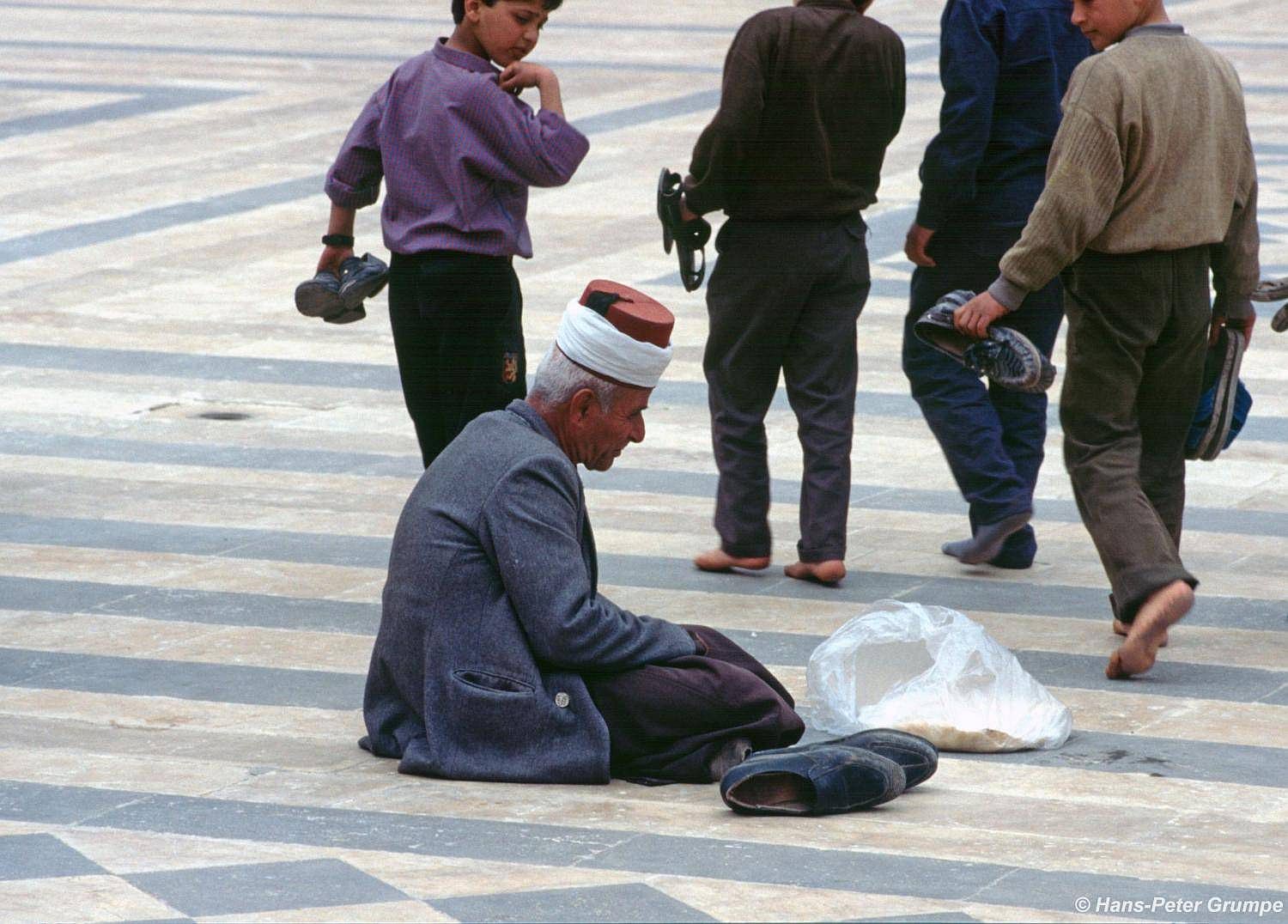 Auf dem großen Innenhof (sahn) der Moschee, dessen schwarz-weiße Pflasterung