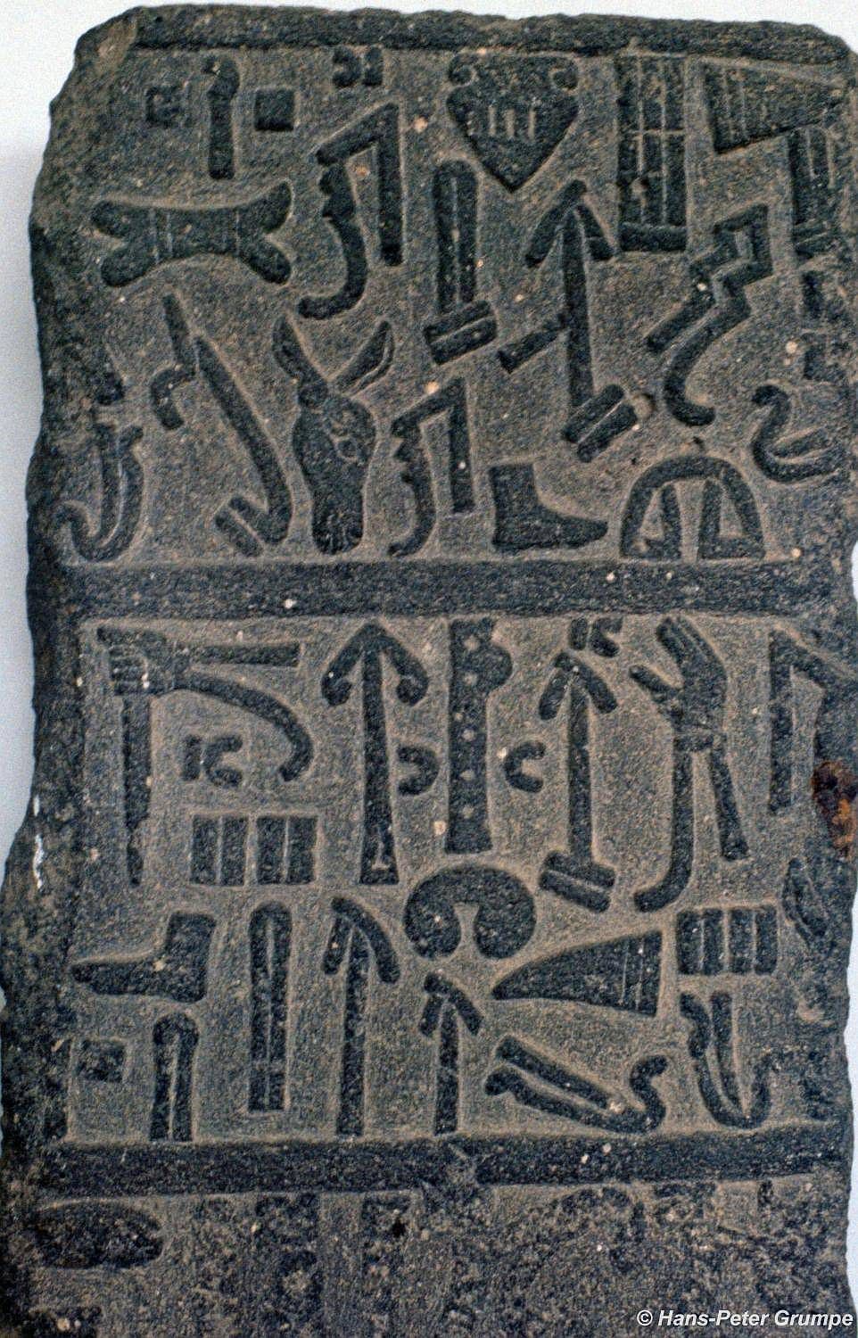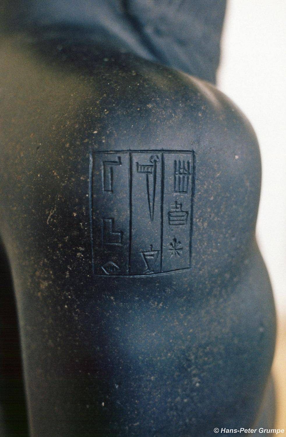 Aleppo: Museum - Keilschrift an der Figur aus Mari