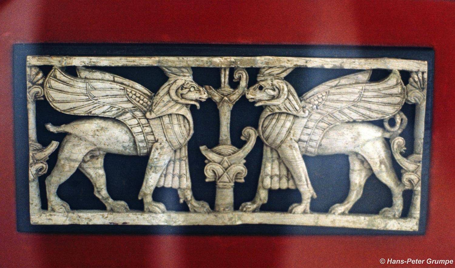 Aleppo: Museum - Elfenbeinschnitzerei aus Hadatu (Arslan Tash), 7. Jhdt. v. Chr.
