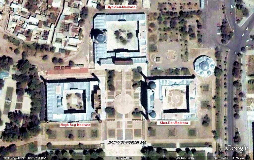 die Ulugbek-Medrese (1417 –1420), die Sher–Dor-Medrese (1619 – 1636) und die