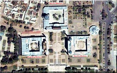 vier Flure, die sich um die Achse ausgebreitet haben. Die Moscheegebäude
