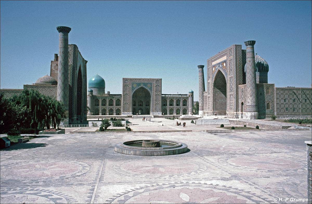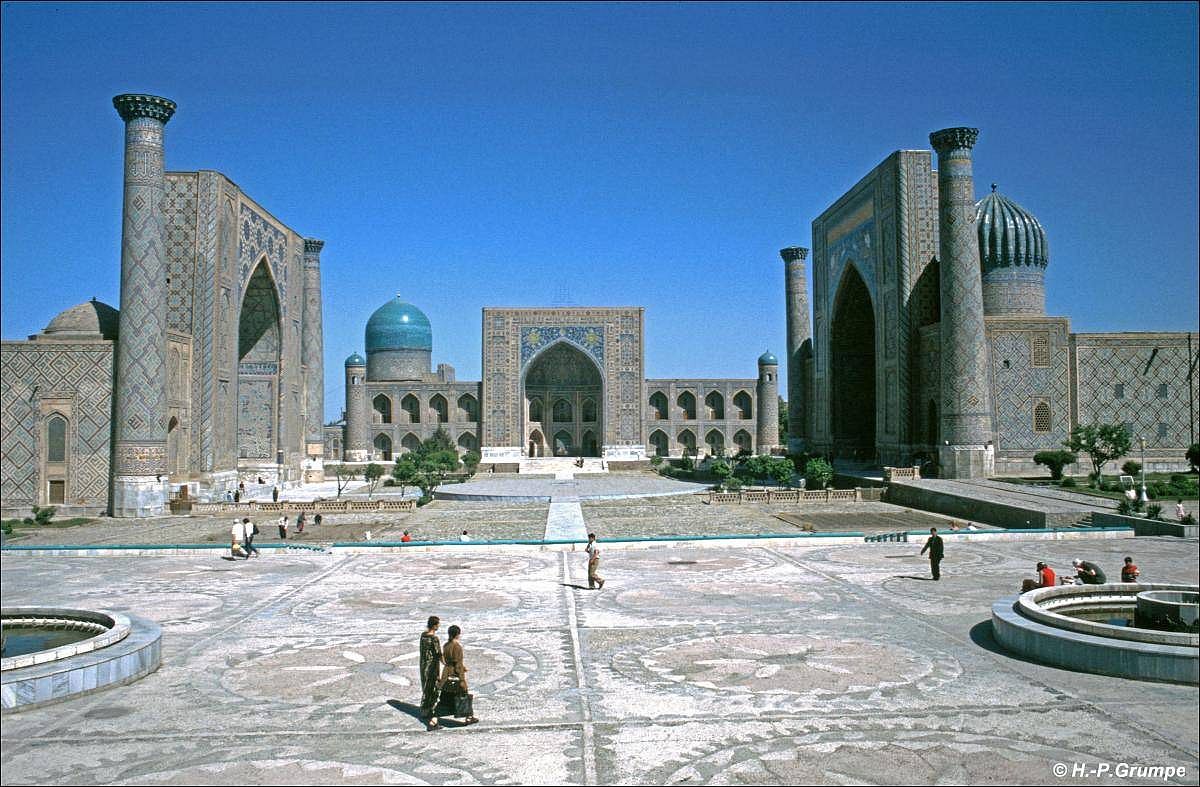 Der Registan (usbek.: Registon) ist einer der prächtigsten Plätze Mittelasiens in Samarkand (usbekisch: Samarqand). Registan – ein Herz des antiken Samarkands, dessen Namen als „Sandiger Platz“ übersetzt werden könnte.