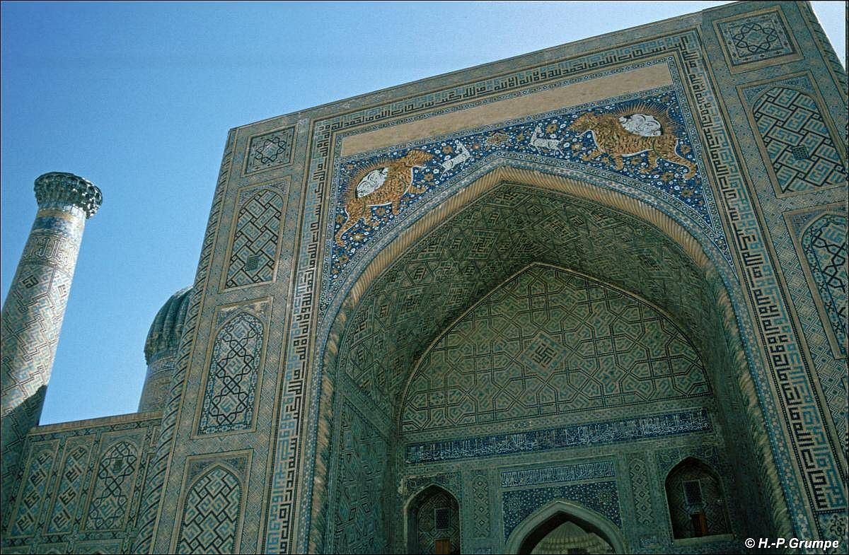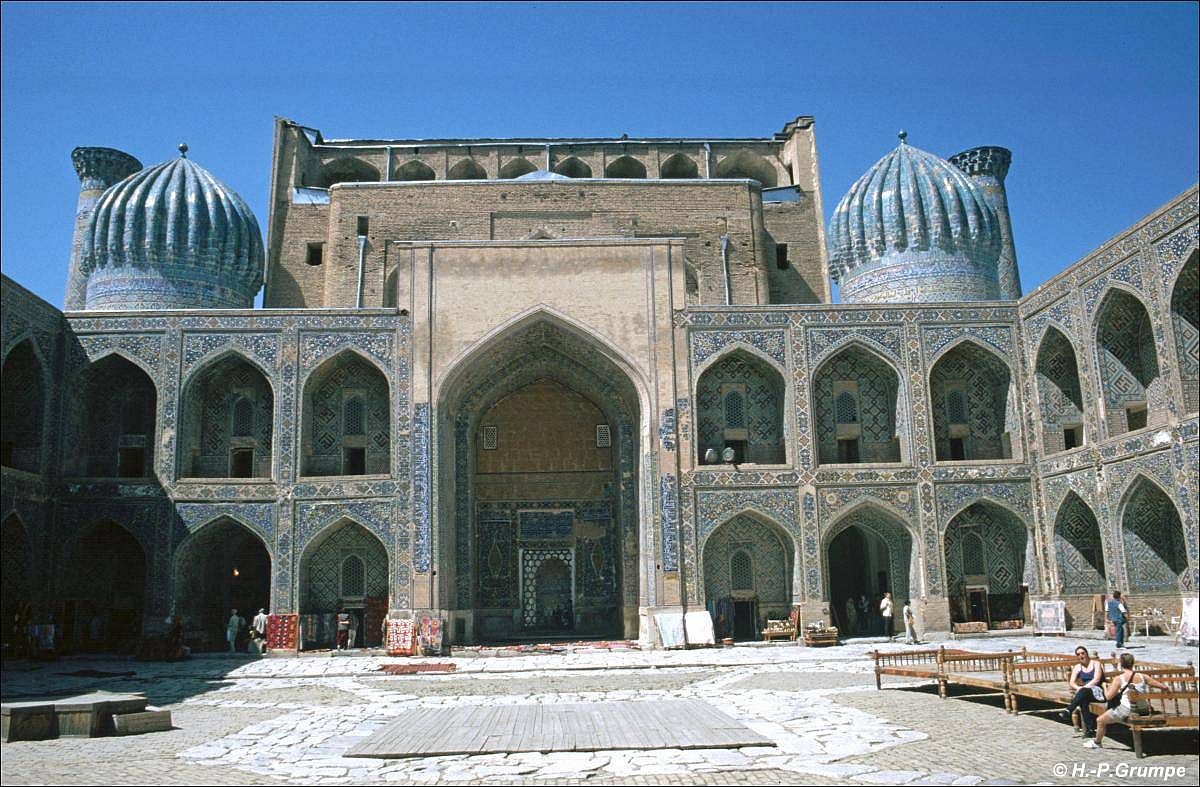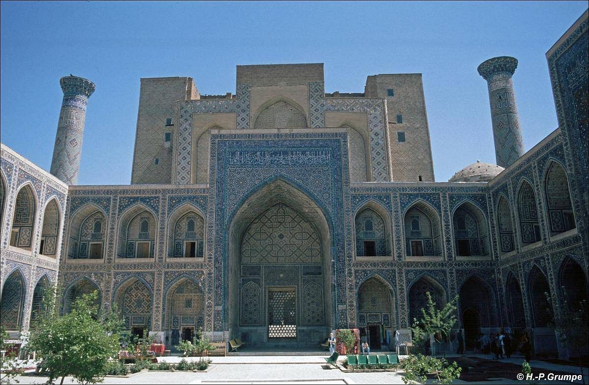 Gebrauch. Die Tilya–Kori-Madrasa hat eine zweistöckige Hauptfassade, einen