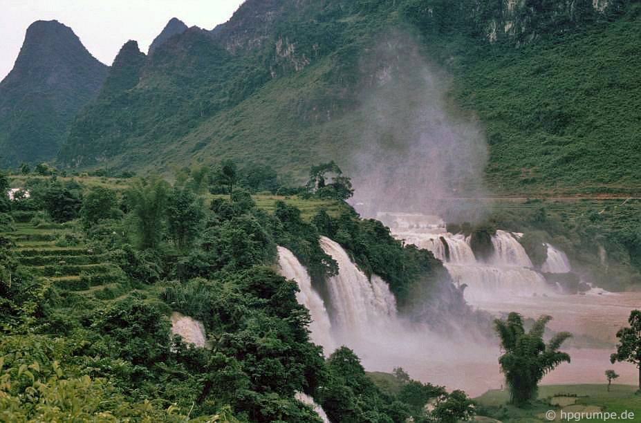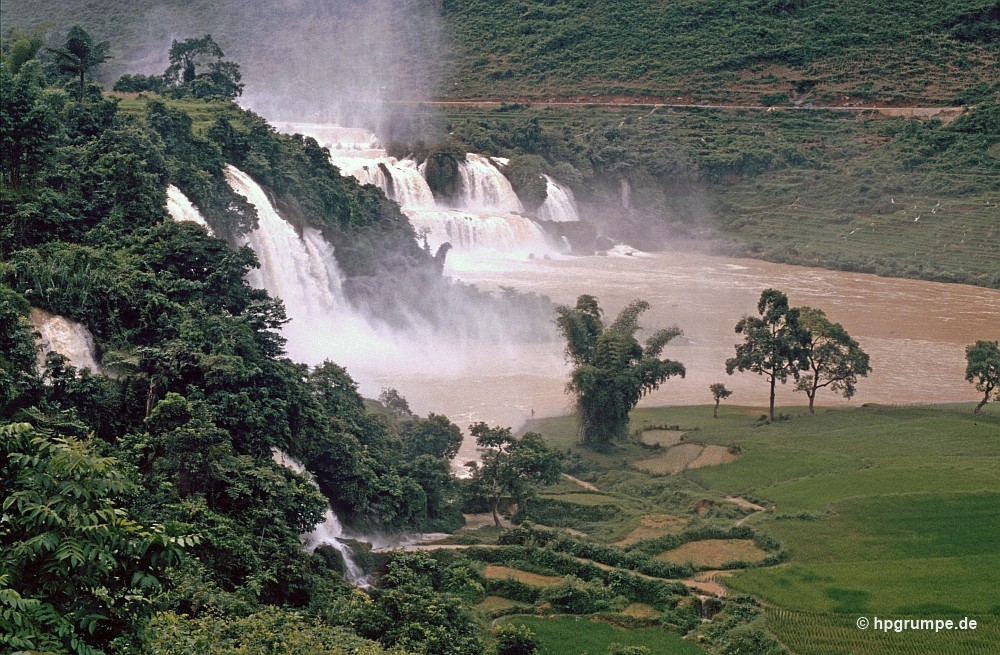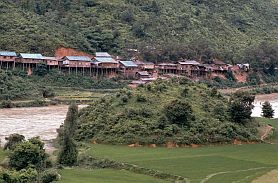 Das Schmuggeldorf am Grenzfluss - die andere Seite gehört bereits zu China. Auf dem rechten Bild ist im Fluss der 'Schmuggelpfad' zu erkennen