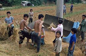 | Beim Reis-Dreschen